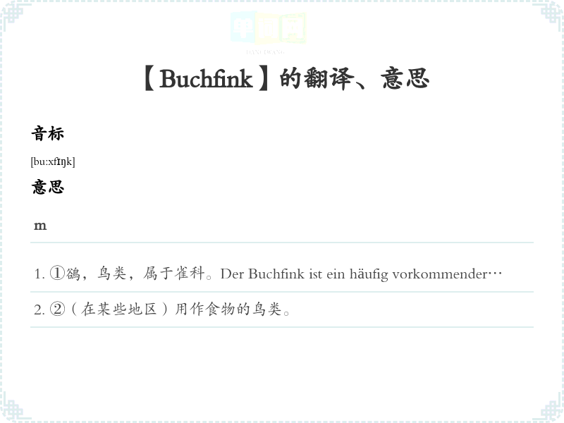 【Buchfink】是什么意思、字义解释