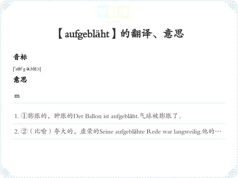 【aufgebläht】是什么意思、字义解释