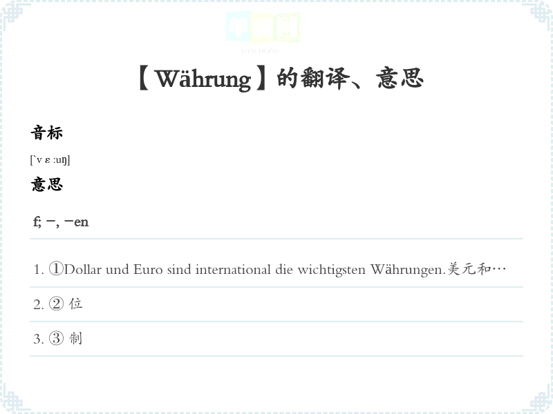 ①Dollar und Euro sind international die wichtigsten Währungen.美元和欧元是国际上最主要。