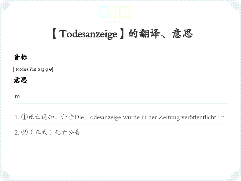【Todesanzeige】是什么意思、字义解释