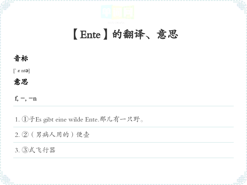 ①子Es gibt eine wilde Ente.那儿有一只野。