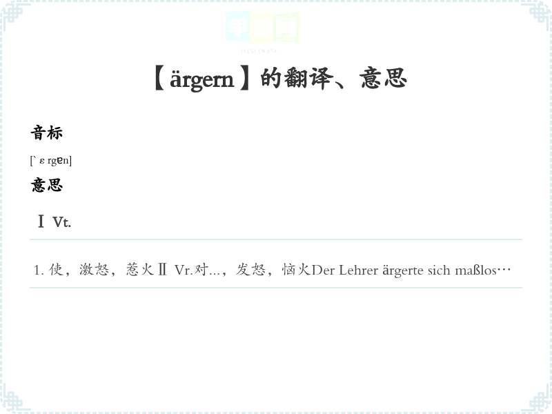【ärgern】是什么意思、字义解释