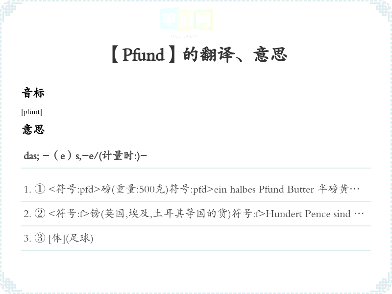 【Pfund】是什么意思、字义解释