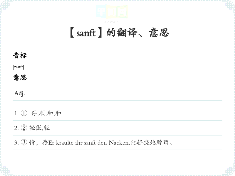③ 情,存Er kraulte ihr sanft den Nacken.他轻挠她脖颈。