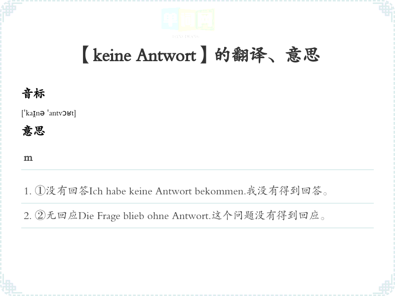 【keine Antwort】是什么意思、字义解释