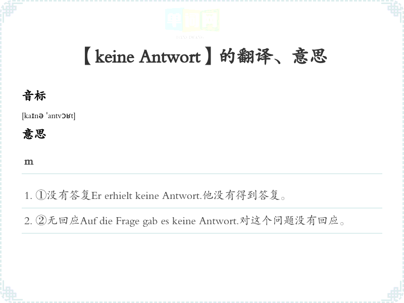 【keine Antwort】是什么意思、字义解释