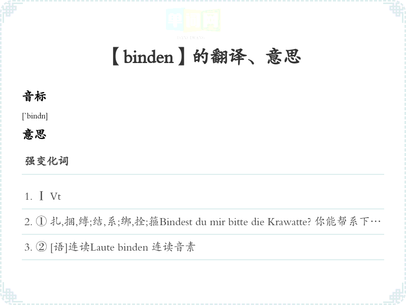 【binden】是什么意思、字义解释