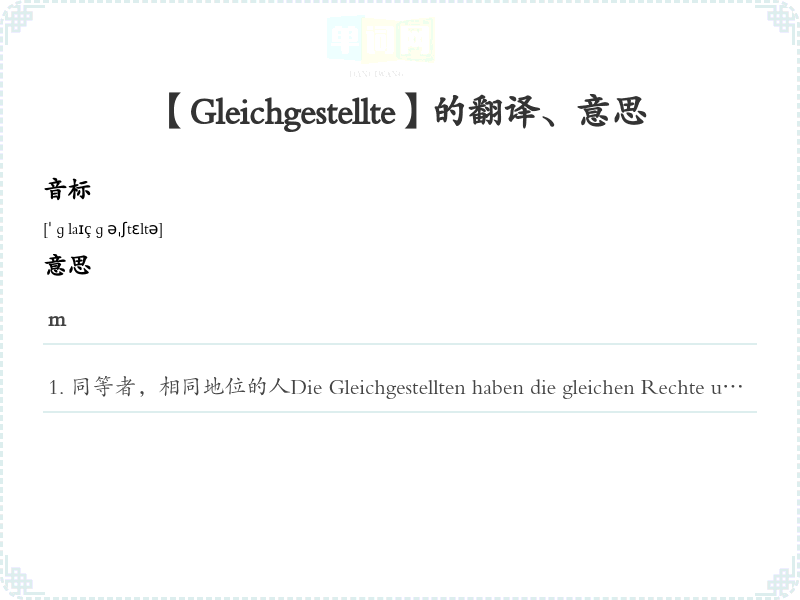 同等者,相同地位的人Die Gleichgestellten haben die gleichen Rechte und Pflichten.同等者享有相同的权利和义务。