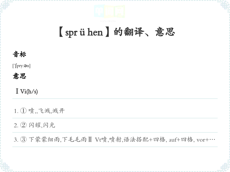 ③ 下蒙蒙细雨,下毛毛雨Ⅱ Vt喷,喷射,语法搭配+四格, auf+四格, vor+三格