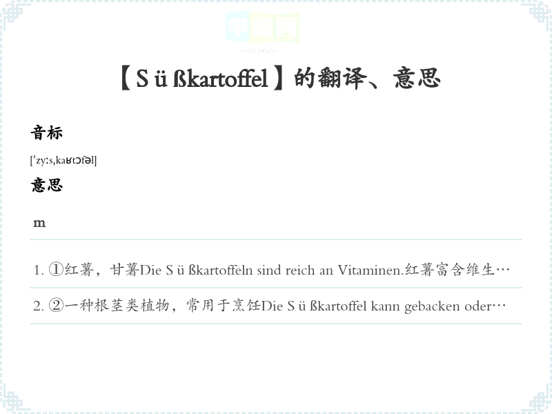 【Süßkartoffel】是什么意思、字义解释