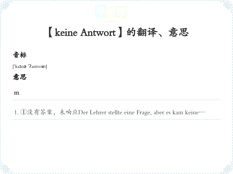 【keine Antwort】是什么意思、字义解释