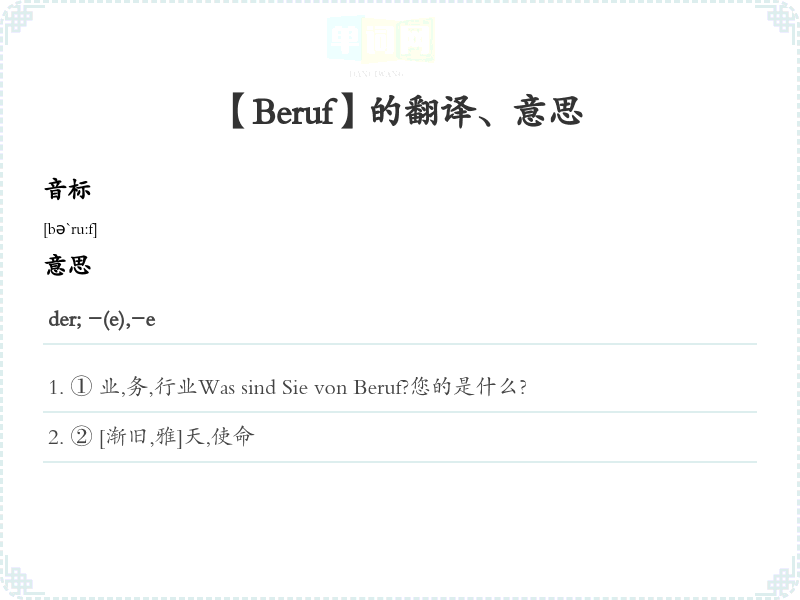 ① 业,务,行业Was sind Sie von Beruf?您的是什么?