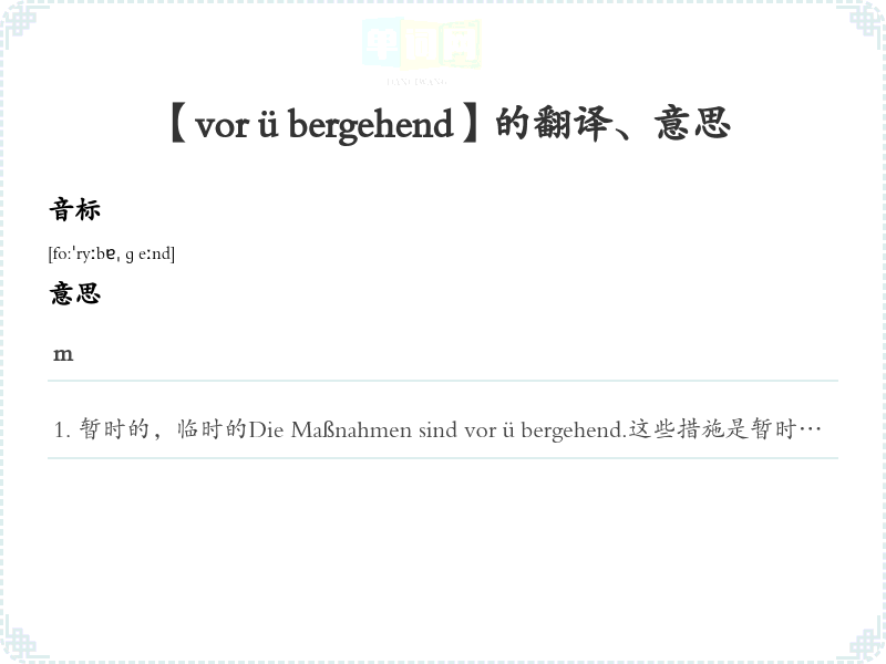 【vorübergehend】是什么意思、字义解释