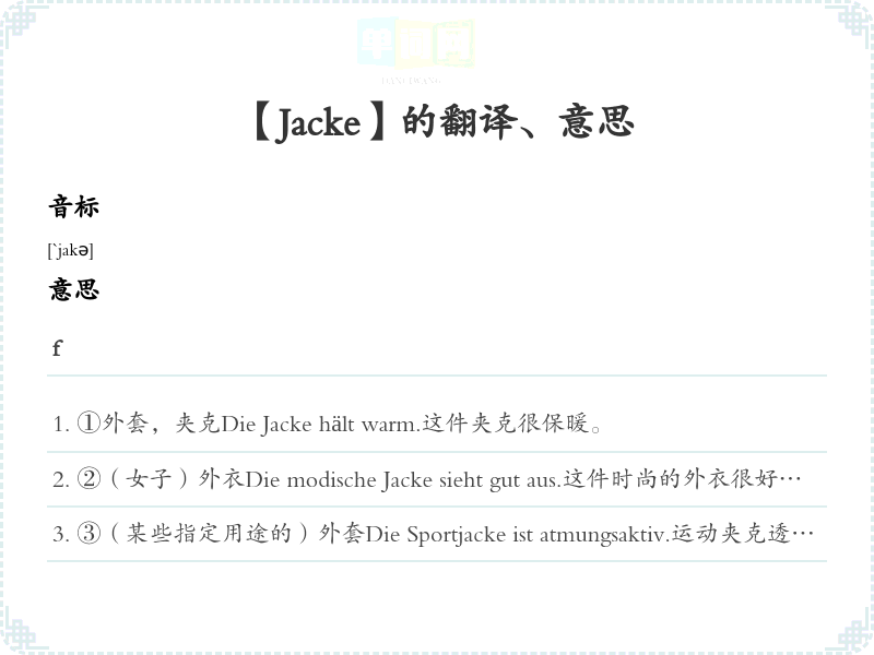 【Jacke】是什么意思、字义解释