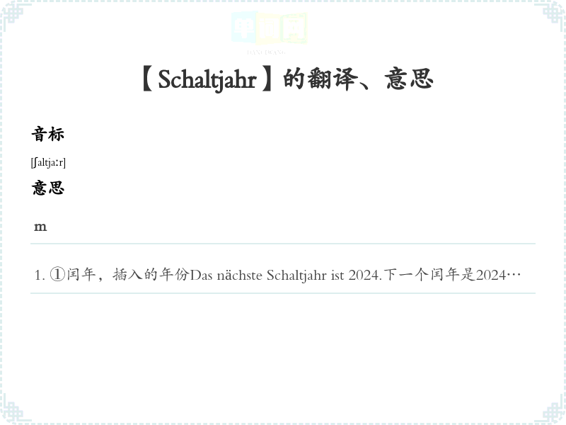 ①闰年,插入的年份Das nächste Schaltjahr ist 2024.下一个闰年是2024年。