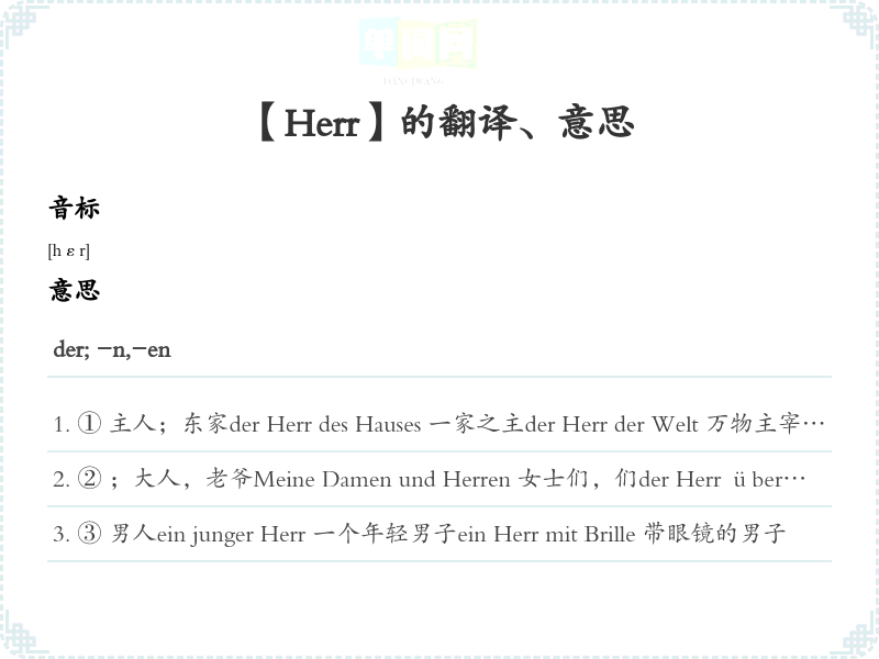 ③ 男人ein junger Herr 一个年轻男子ein Herr mit Brille 带眼镜的男子