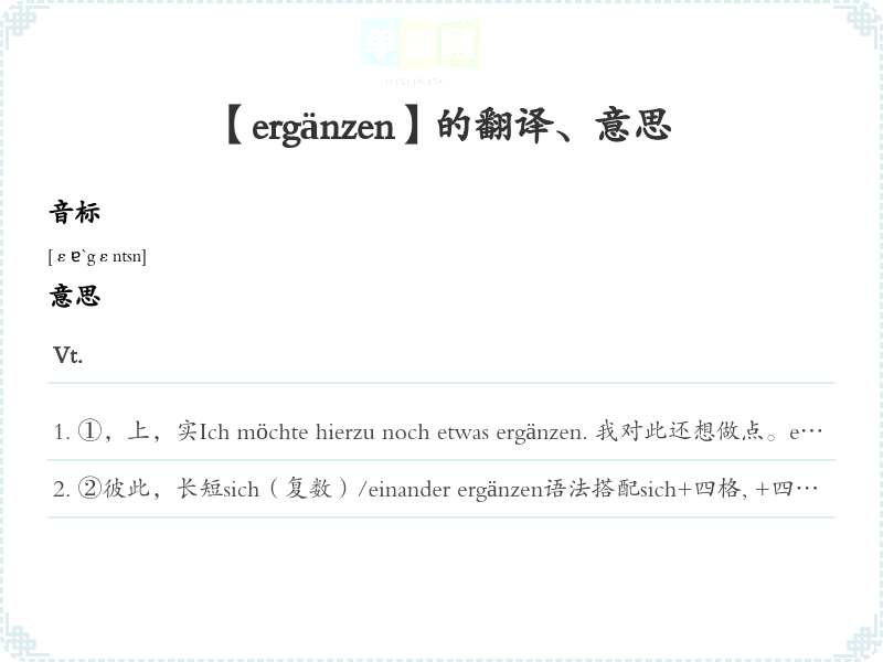 ①,上,实Ich möchte hierzu noch etwas ergänzen. 我对此还想做点。eine ergänzende Bemerkung machen 做说明