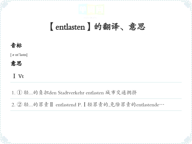【entlasten】是什么意思、字义解释