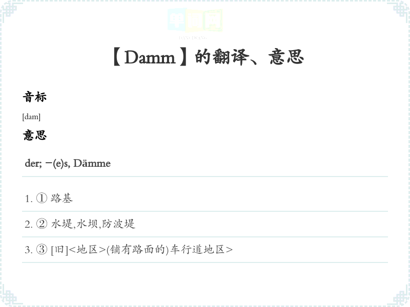 【Damm】是什么意思、字义解释