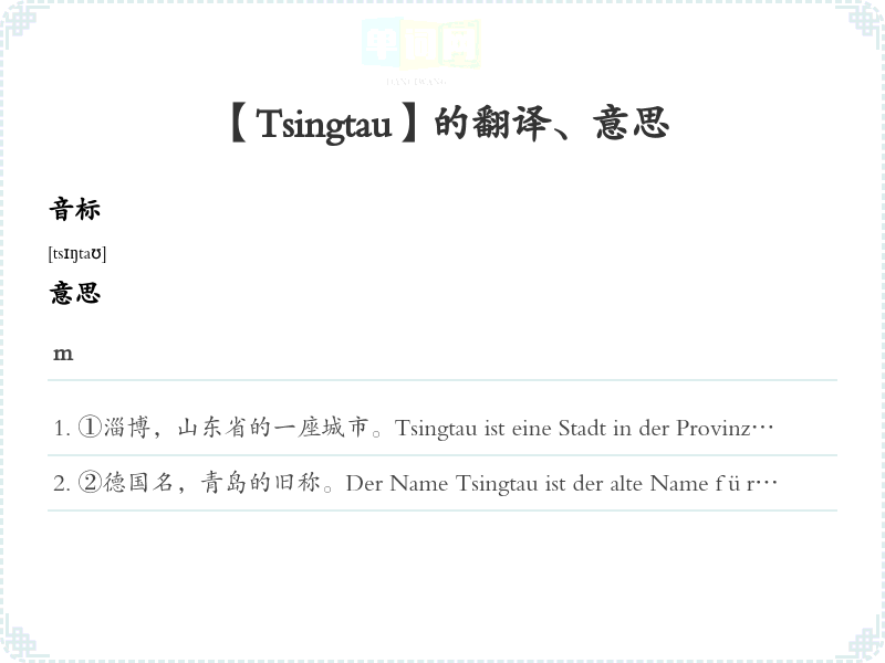 【Tsingtau】是什么意思、字义解释