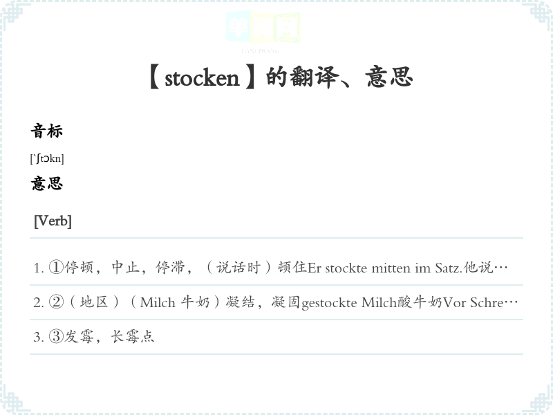 【stocken】是什么意思、字义解释