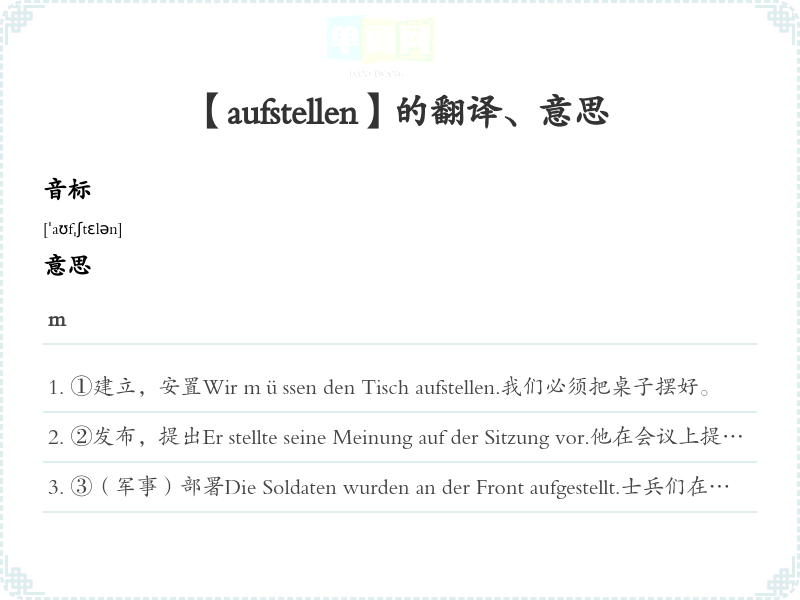 【aufstellen】是什么意思、字义解释