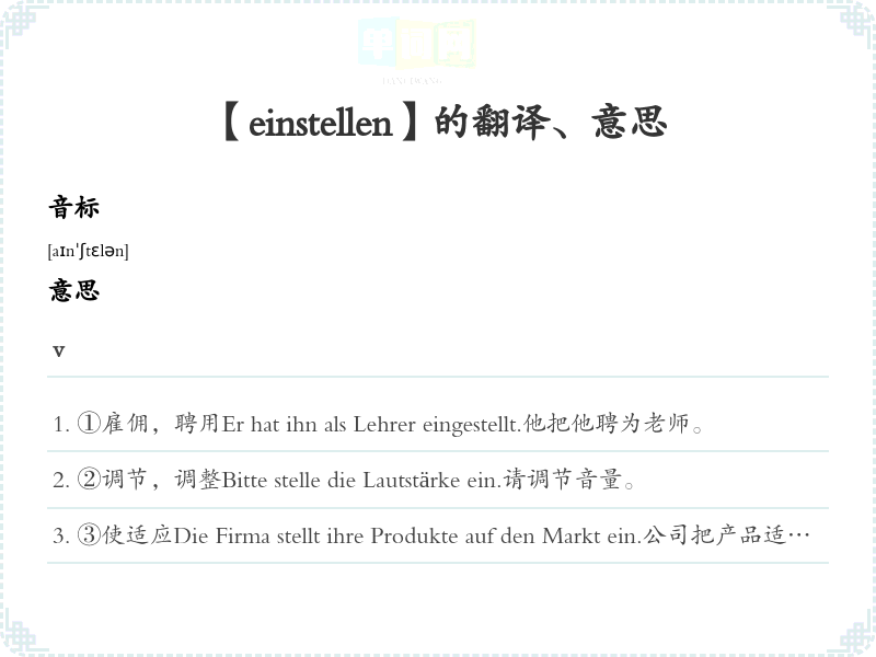 【einstellen】是什么意思、字义解释