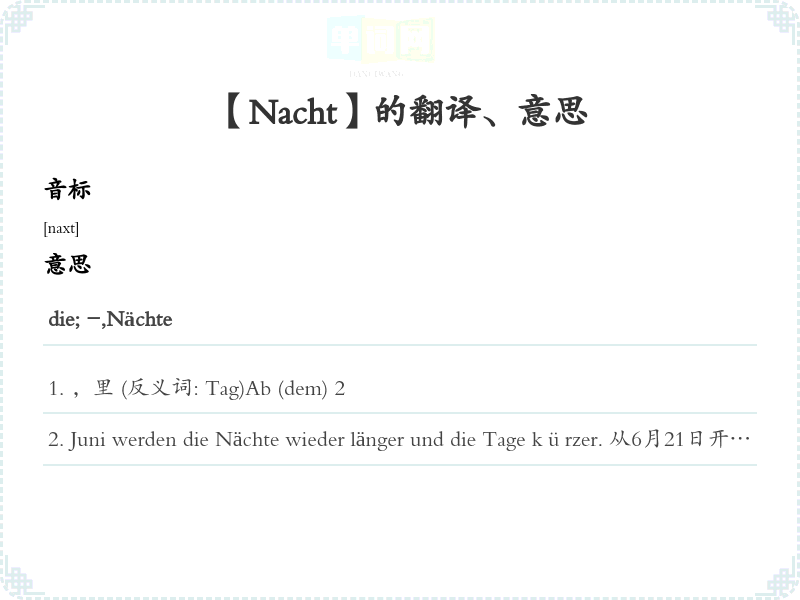 【Nacht】是什么意思、字义解释