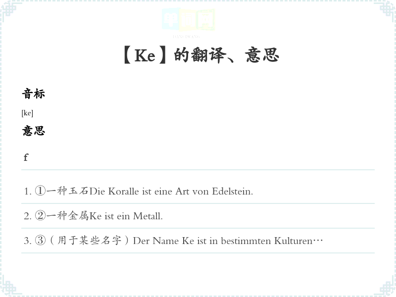 ③(用于某些名字)Der Name Ke ist in bestimmten Kulturen gebräuchlich。