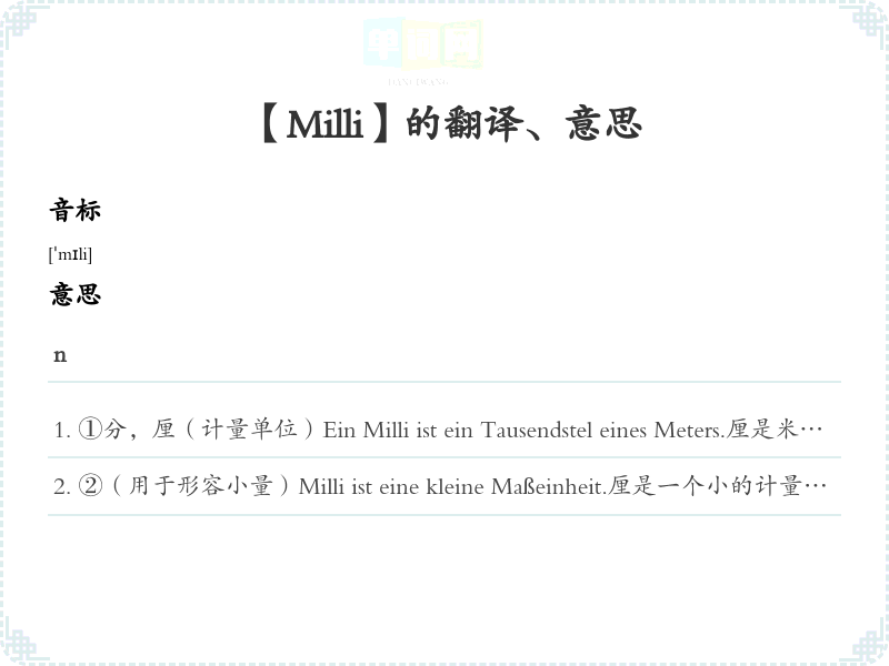 【Milli】是什么意思、字义解释