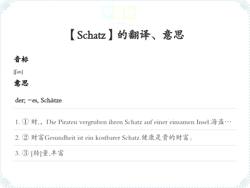 ② 财富Gesundheit ist ein kostbarer Schatz.健康是贵的财富。