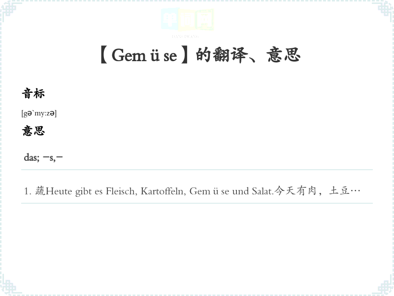 蔬Heute gibt es Fleisch, Kartoffeln, Gemüse und Salat.今天有肉,土豆,蔬和沙拉。