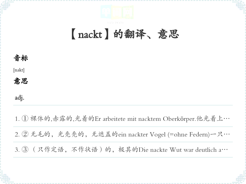 【nackt】是什么意思、字义解释