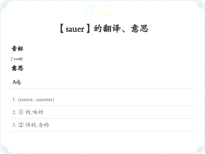 ⑦ (汽车)出故障的,损坏的,抛锚的Dieses Auto ist sauer.这辆汽车出毛病了。