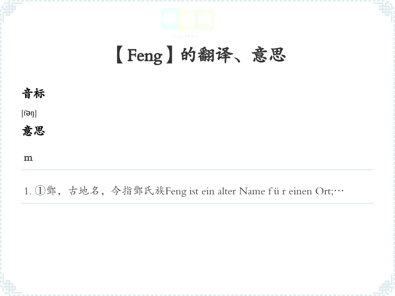 - 1. Der Feng ist ein bekannter Name in der chinesischen Kultur.