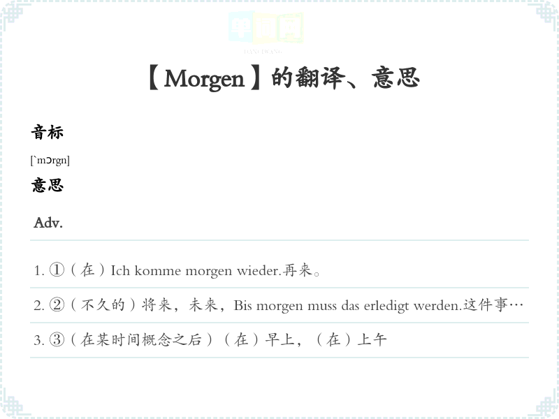 【Morgen】是什么意思、字义解释
