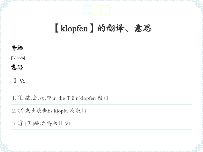 【klopfen】是什么意思、字义解释