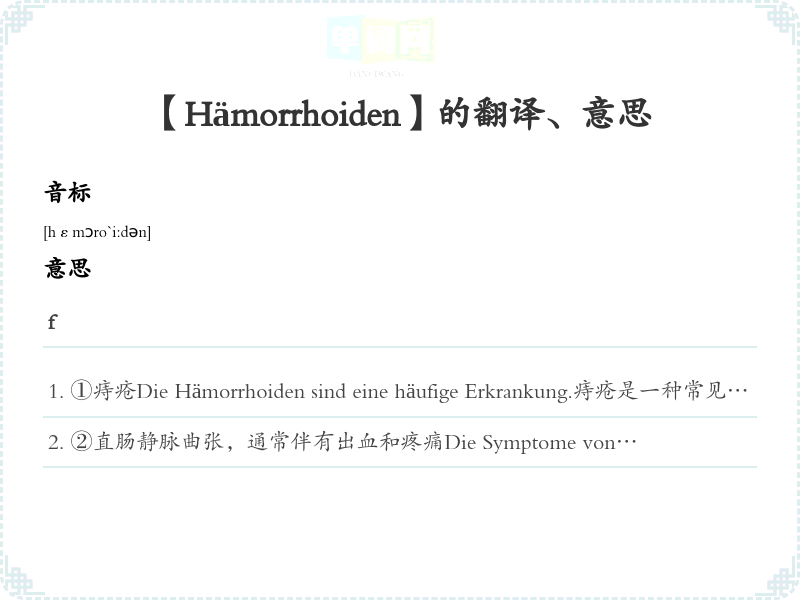 【Hämorrhoiden】是什么意思、字义解释