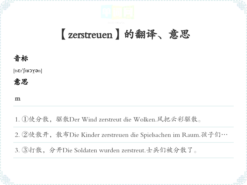 【zerstreuen】是什么意思、字义解释