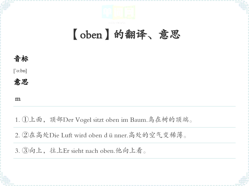 【oben】是什么意思、字义解释