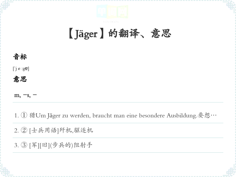 【Jäger】是什么意思、字义解释