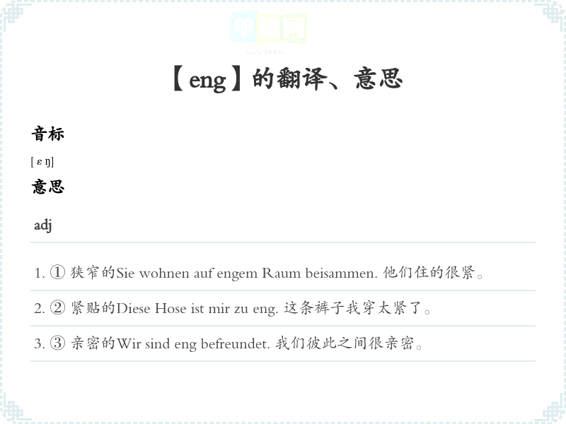 ③ 亲密的Wir sind eng befreundet. 我们彼此之间很亲密。