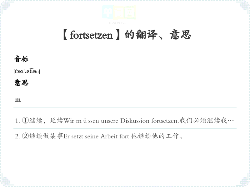 【fortsetzen】是什么意思、字义解释