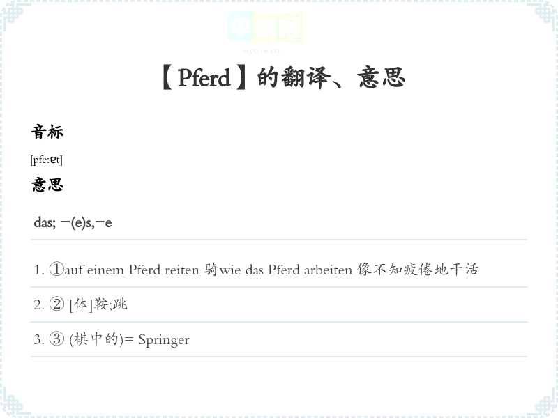①auf einem Pferd reiten 骑wie das Pferd arbeiten 像不知疲倦地干活
