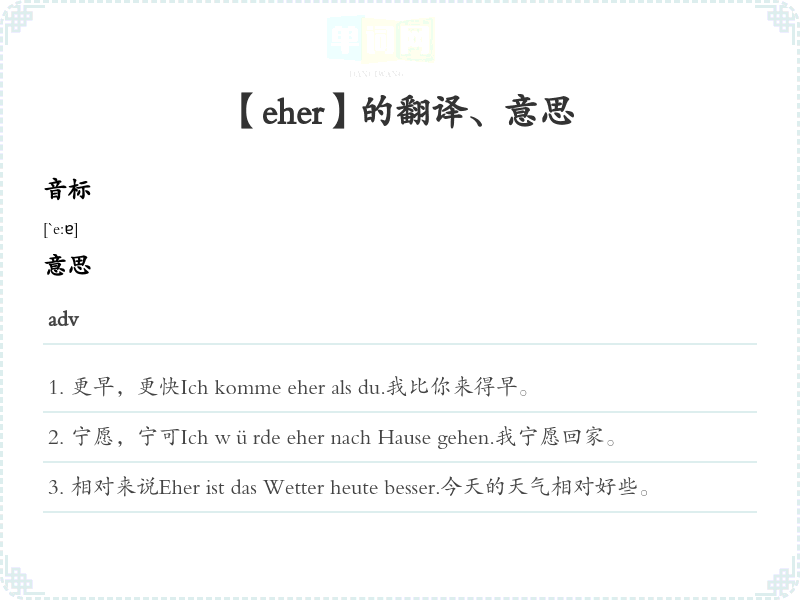相对来说Eher ist das Wetter heute besser.今天的天气相对好些。