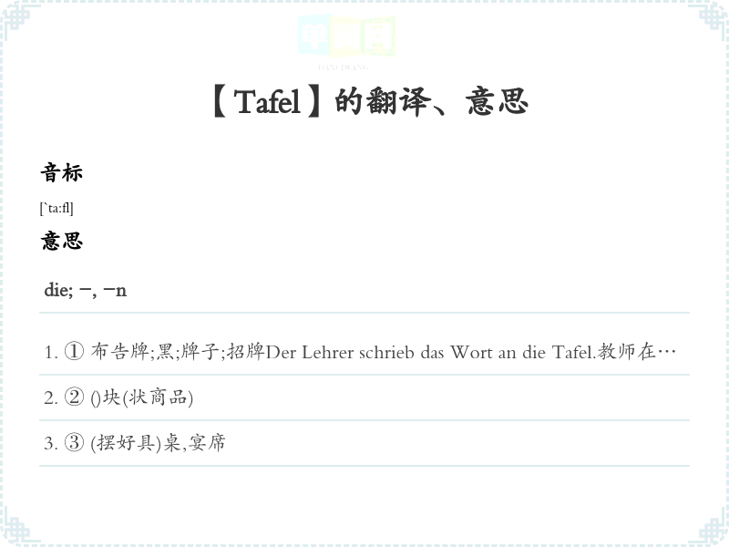 【Tafel】是什么意思、字义解释