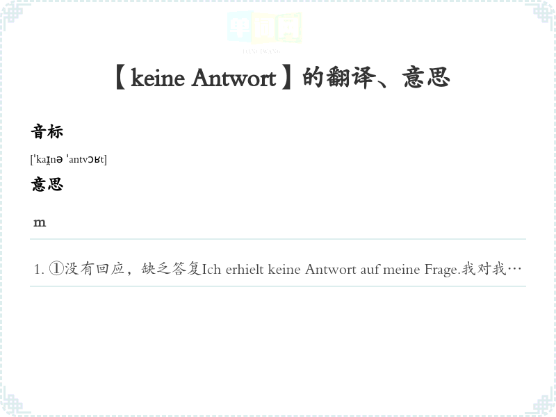 【keine Antwort】是什么意思、字义解释