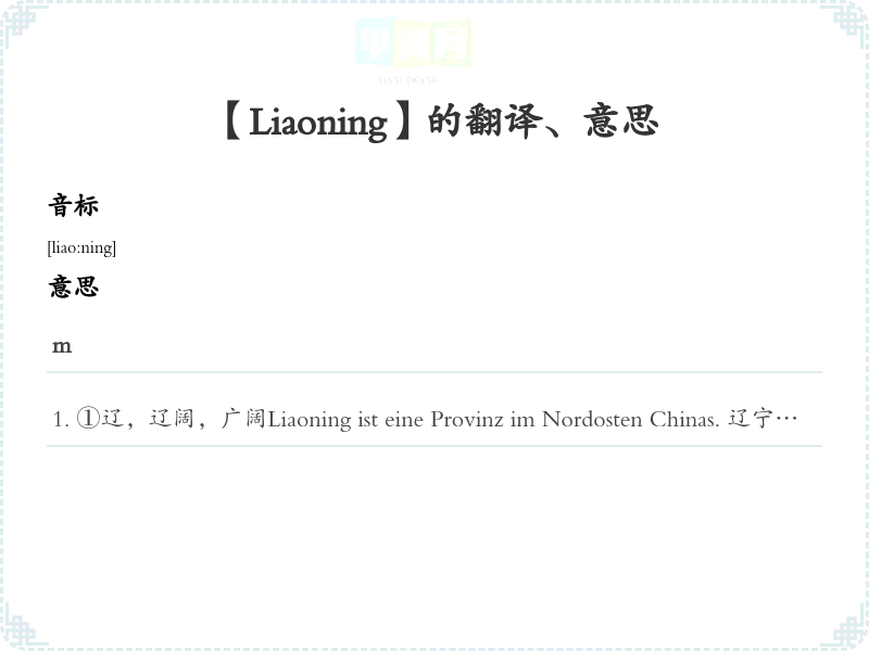 【Liaoning】是什么意思、字义解释