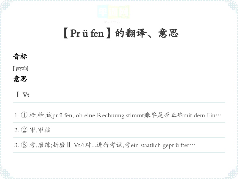 【Prüfen】是什么意思、字义解释