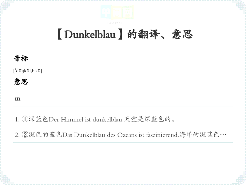 ①深蓝色Der Himmel ist dunkelblau.天空是深蓝色的。